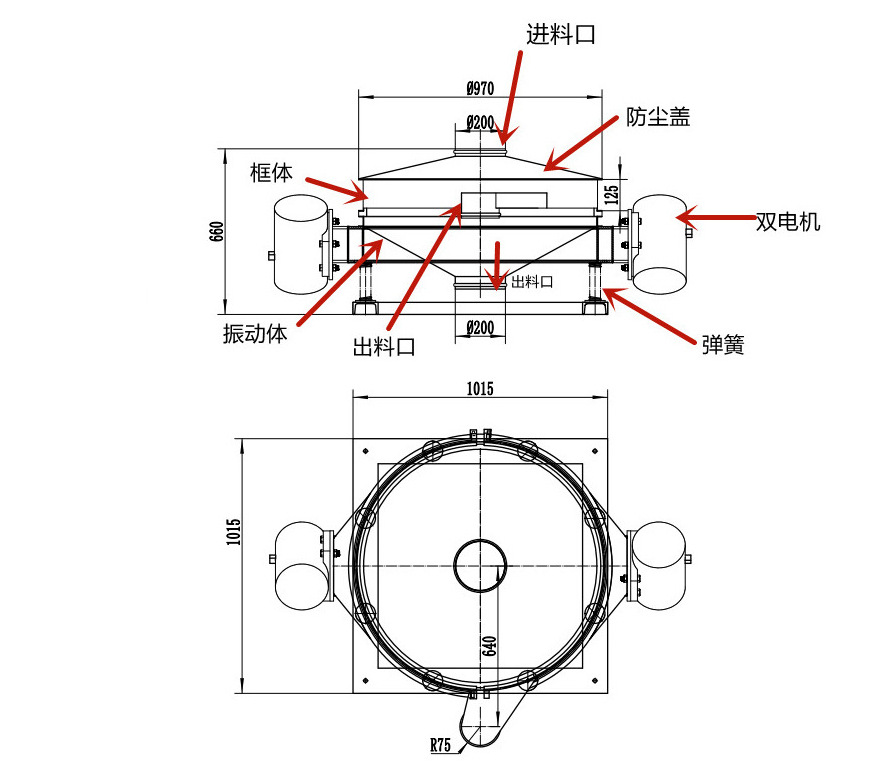 | 產(chǎn)品型號 | 功率(KW) | 電機轉(zhuǎn)速(r/min) | 篩面直徑(mm) | 外型尺寸(mm) |